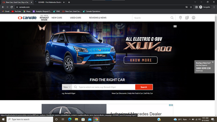 PLACEMENT CARWALE : a) Desktop. b)M-Site.